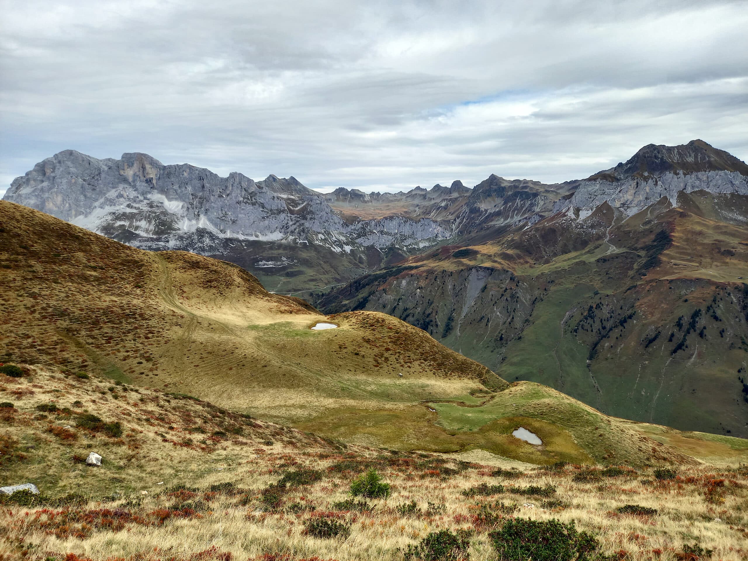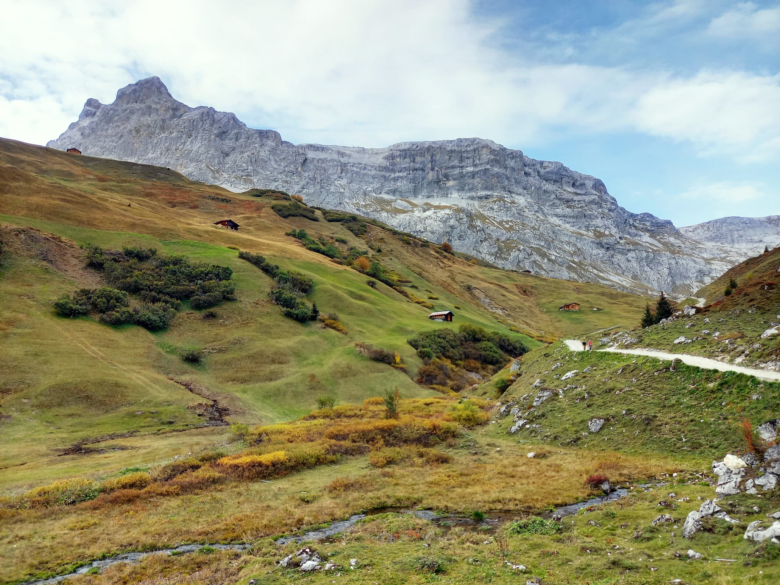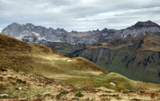 - Day 1: St. Antönien to Berghaus Sulzfluh, including the Chüenihorn (2.412 m). 16,5 kilometers, 1.050 m ascent, 700 m descent.