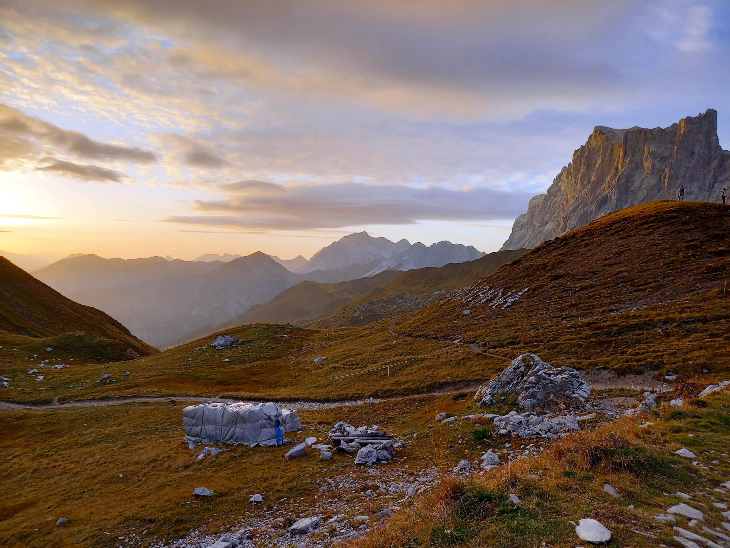 The second hiking day starts with a basic but filling breakfast in the mountain hut. After departure we climb into rougher alpine terrain, with impressive views all around us. Today we will cross the border into Austria, where the Tilisunahütte awaits us. The Sulzfluh is the centerpiece of the area and our 2nd day. Depending on our fitness and the weather, we can either go around it or climb to the top of this iconic mountain (2.817 m). Like the previous day, you will receive personal assignments to deepen your understanding of your current life and personal journey. At the Tilisunahütte (2.211 m), we might need some refreshments as we wrap up the day with a collective reflection on the lessons learned. Once again, the mountain hut crew will serve us a three-course dinner, and we can count on another unforgettable sunset to close the day.